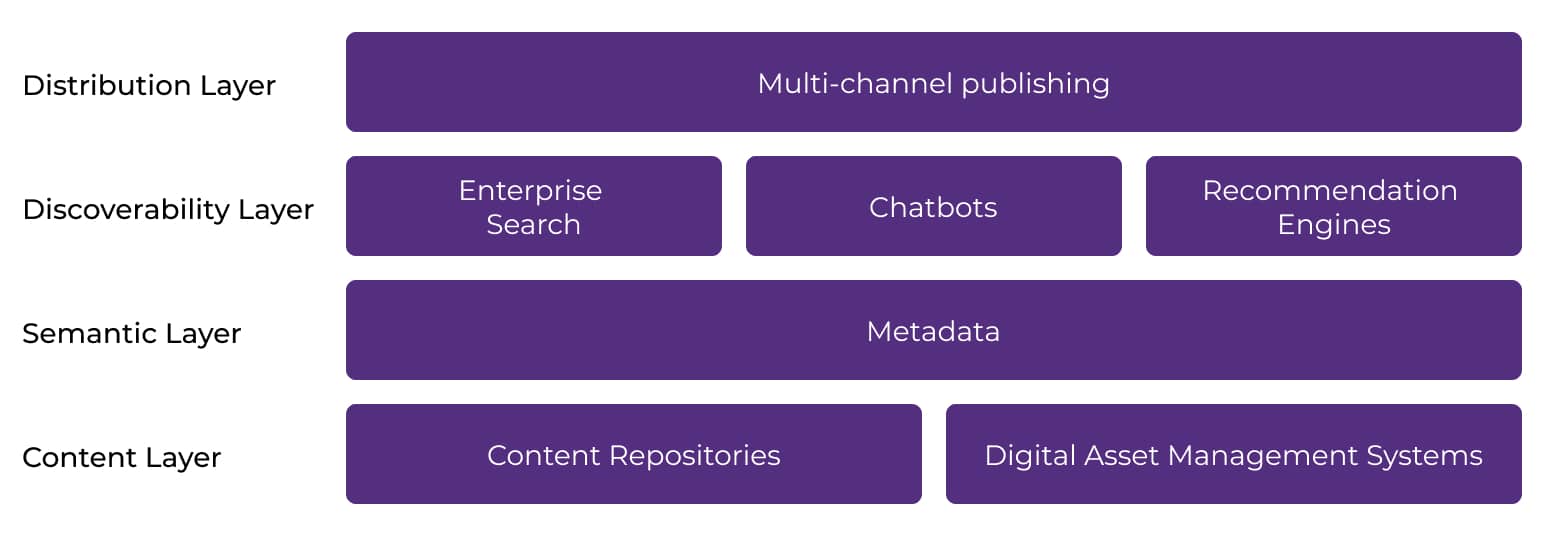 Structuring and organizing content within the semantic layer empowers organizations to extract valuable insights, standardize metadata, identify relationships, and enhance searchability. This facilitates the seamless integration of diverse content sources into applications such as recommendation engines, dashboards, and end-user-facing content. This integration empowers users to access and leverage all relevant information from a single source, driving better decision-making and knowledge discovery.